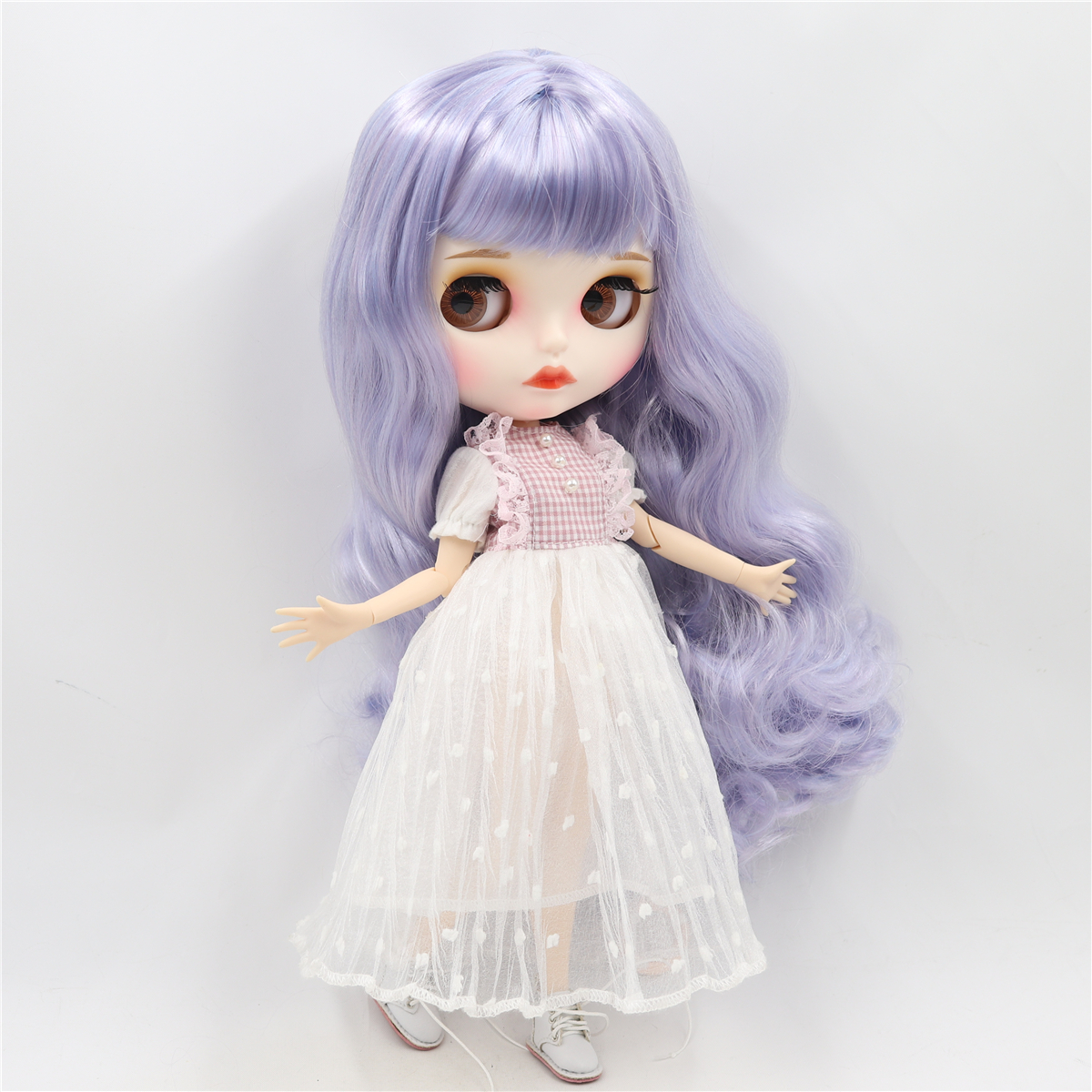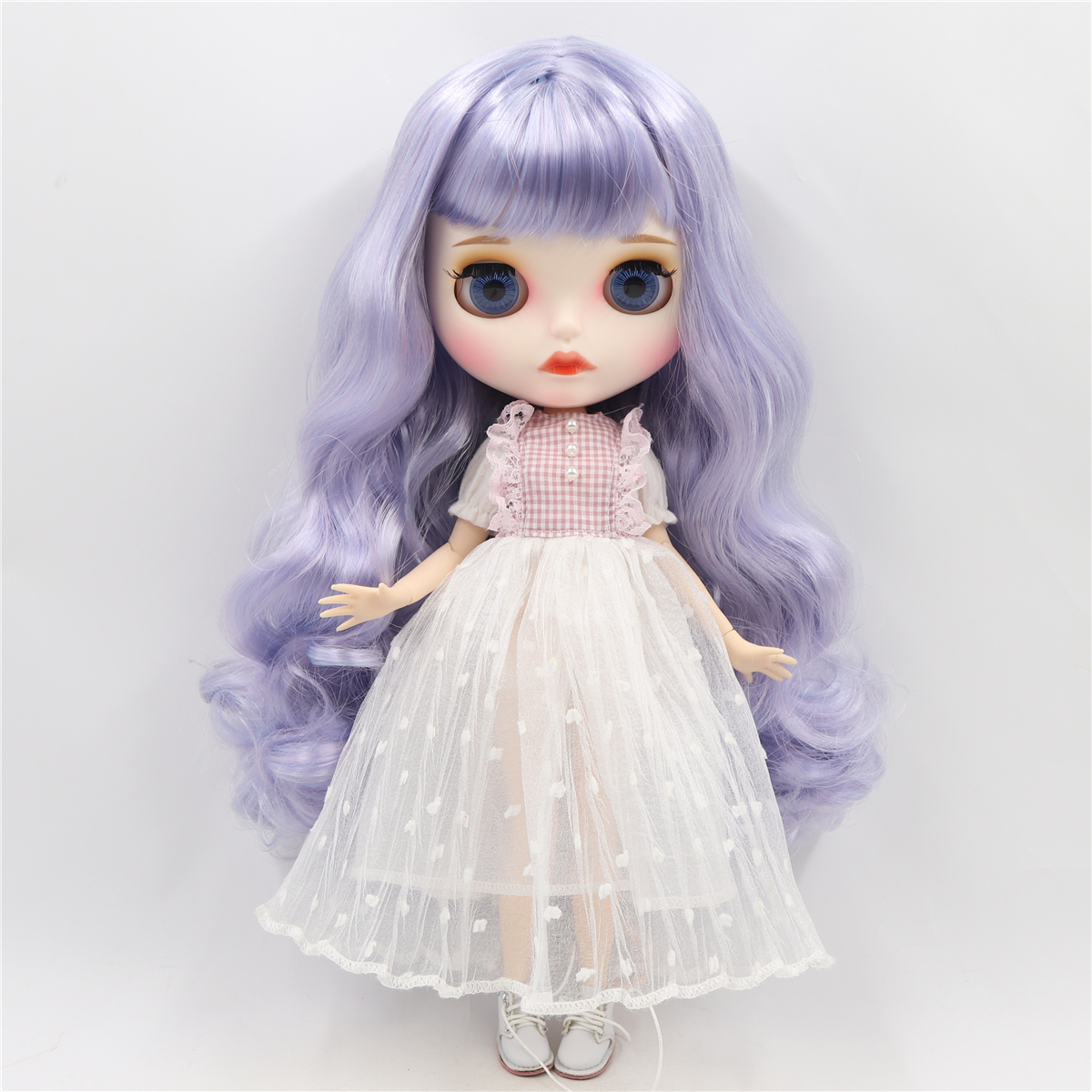 Neo Blythe Doll with Purple Hair, White Skin, Matte Cute Face & Custom Jointed Body 1Neo Blythe Doll with Purple Hair, White Skin, Matte Cute Face & Custom Jointed Body 2Neo Blythe Doll with Purple Hair, White Skin, Matte Cute Face & Custom Jointed Body 3