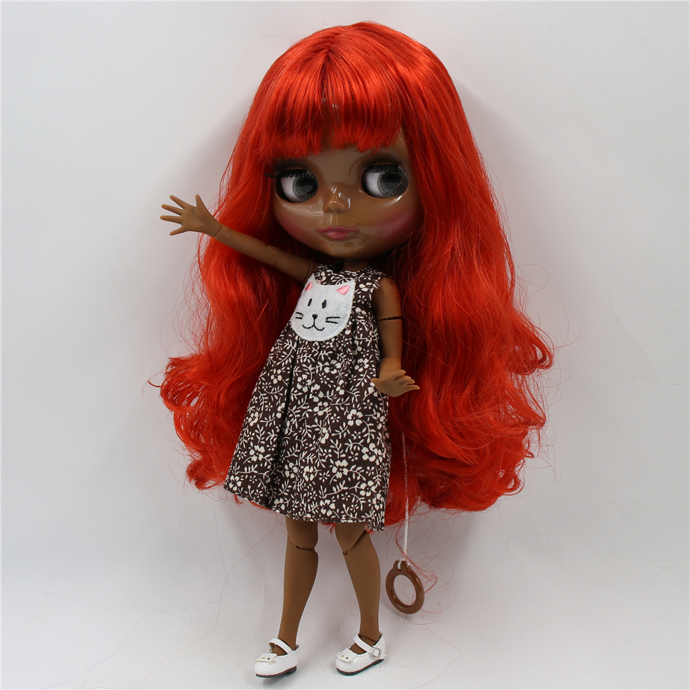 Neo Blythe Doll with Red Hair, Black skin, Shiny Face & Jointed Body Black Skin Factory Blythe Doll Red Hair Factory Blythe Doll Shiny Face Factory Blythe Doll