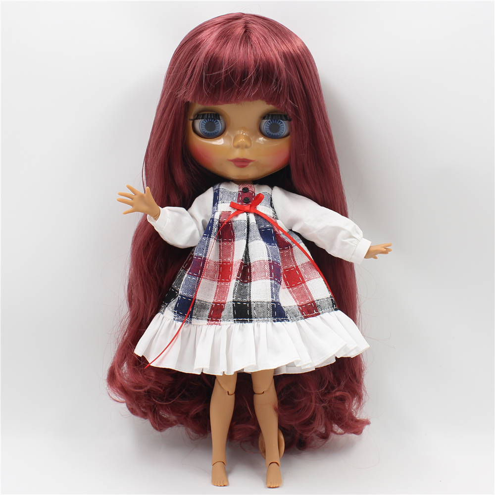 Neo Blythe Doll with Red Hair, Dark Skin, Shiny Face & Jointed Body Dark Skin Factory Blythe Doll Red Hair Factory Blythe Doll Shiny Face Factory Blythe Doll