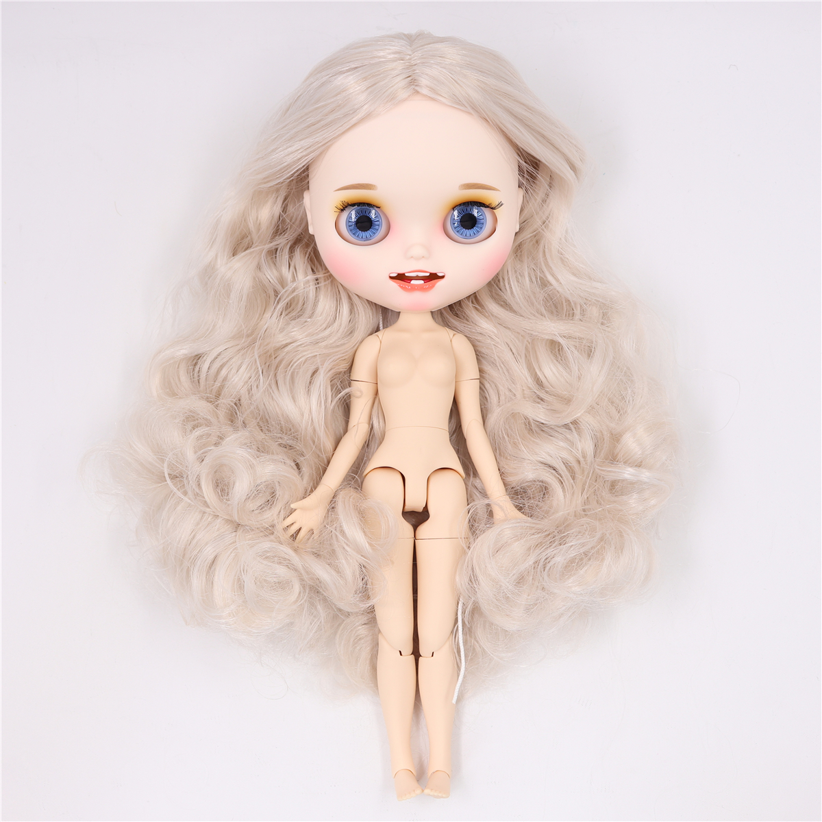 Neo Blythe Doll with Silver Hair, White Skin, Matte Smiling Face & Custom Jointed Body: