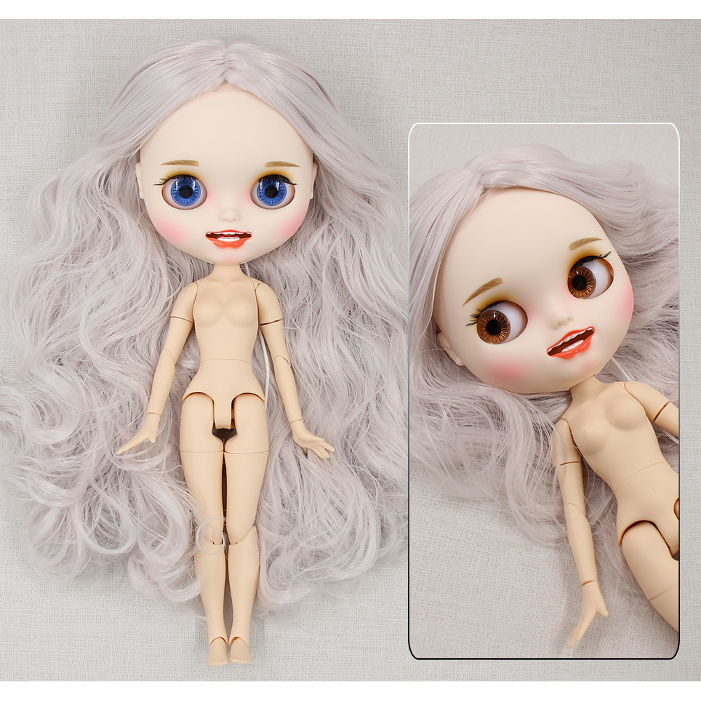 Neo Blythe Doll with Silver Hair, White Skin, Matte Smiling Face & Custom Jointed Body: