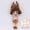 Dressed in a festive Christmas-themed outfit, Olivia wears an adorable cream-colored lace dress with puffed sleeves. A red bow adorns her neckline, adding a pop of color to her ensemble. She also sports a pair of brown fuzzy boots, keeping her warm and cozy during the winter months. The highlight of Olivia’s outfit is her enchanting reindeer hat, complete with antlers and a red bow, making her the perfect companion for your holiday celebrations.
