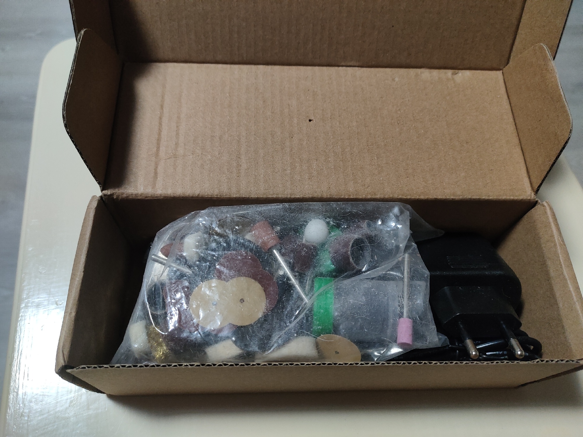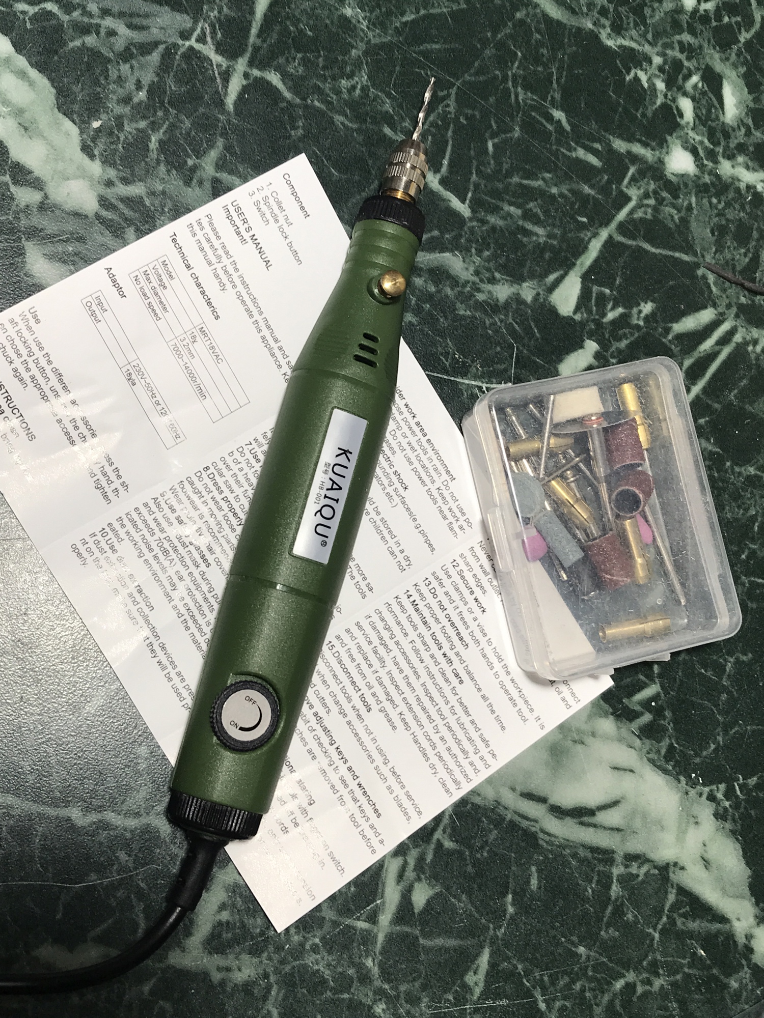 It matches the description! Turned it on and it works. Many nozzles and bits! Speed increases normally.