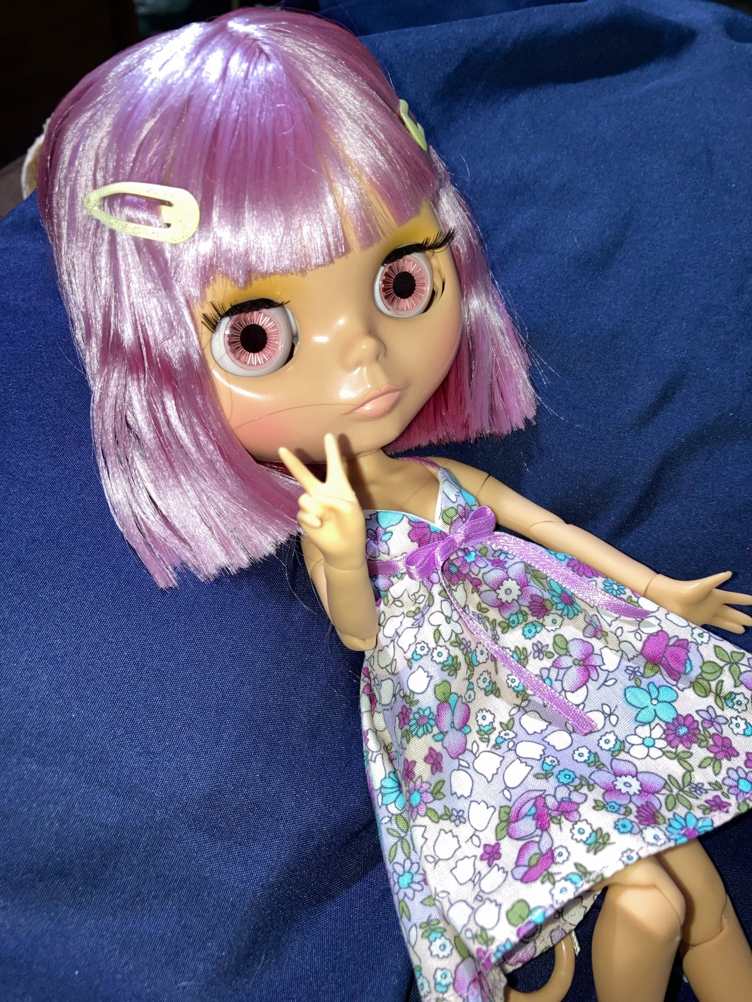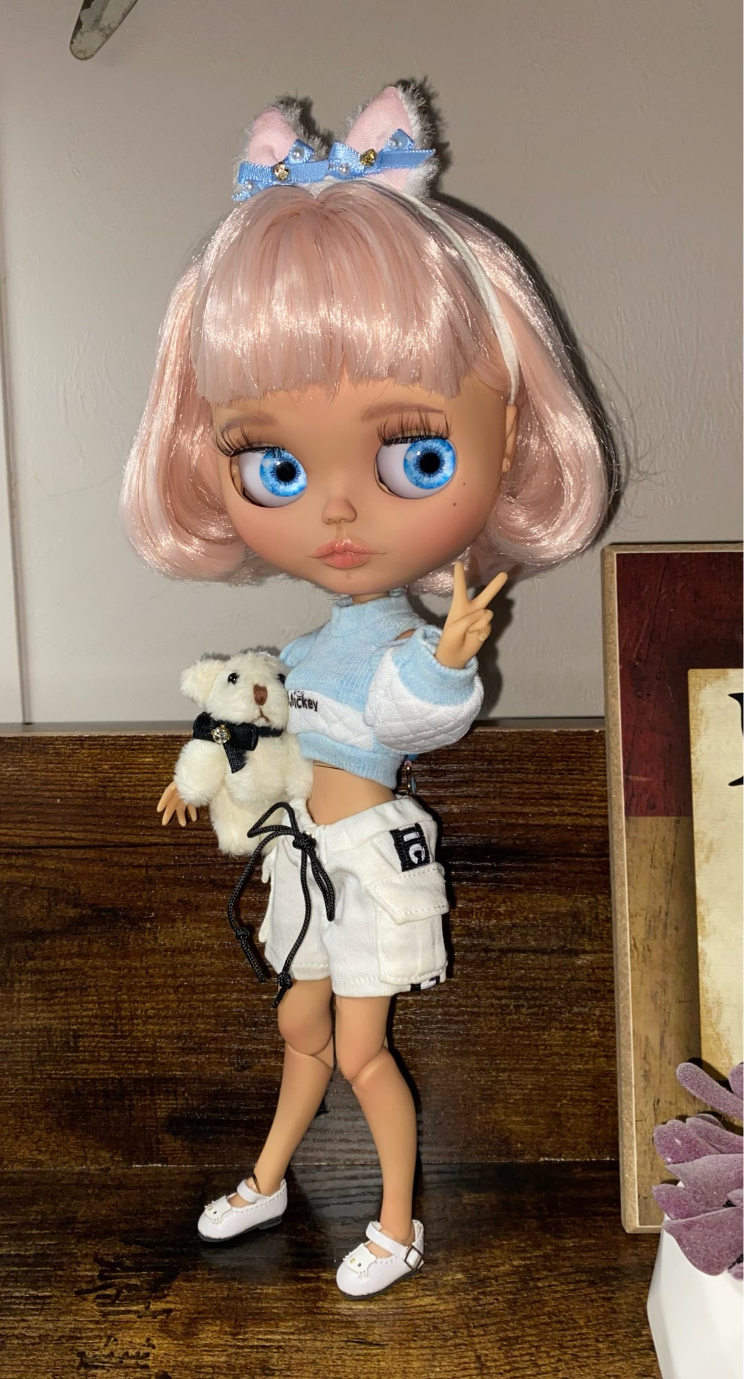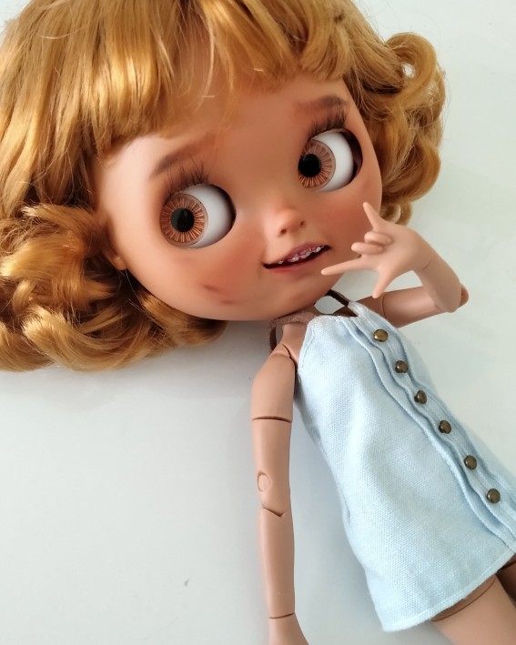 - Light makeup applied by our Blythe doll customizer.