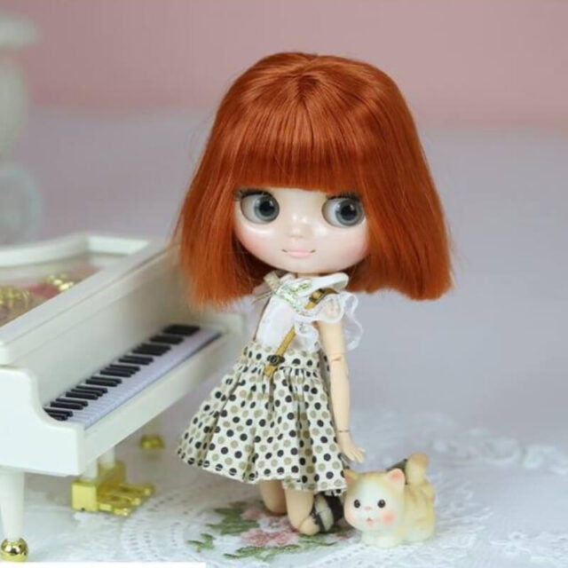 Sophia’s most striking feature is her vibrant red bob hairstyle, which perfectly complements her fair skin tone. As with all our Middie Blythe dolls, Sophia features a unique eye mechanism controlled by a dial on the back of her head, allowing her eyes to look left and right. Additionally, her head can twist and tilt, and her custom jointed body allows for endless posing possibilities. A dress will be included from the available options.