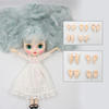 Neo Blythe Doll models come with four different eye colors and positions. Blythe has a large head to incorporate the eye-change mechanism, which is controlled by a pull cord running from the back of the head that all work without the help of batteries. Blythe’s eyes are large and round, and they change from a variety of colors such as green, pink, yellow, blue, brown, and gray each time the string is pulled, momentarily closing between each cord pull. Although each Blythe doll comes with four sets of eyechips already installed, you can always customize Blythe eyechips to your liking from galaxy design to hearts to human-like eyes. In addition to traditional eye dolls, some of the new generation custom Blythe dolls have sleepy eyes integrated, which a second cord allows changing the gaze into the sleepy position.