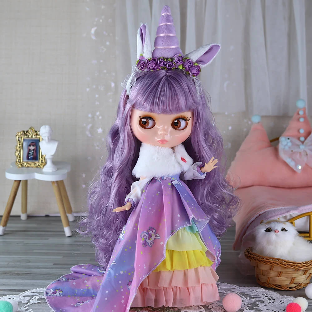 Vanessa – Premium Custom Neo Blythe Doll with Purple Hair, Natural Skin & Shiny Cute Face