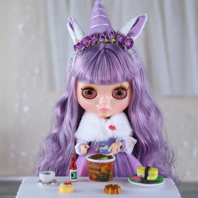 - Light makeup applied by our Blythe doll customizer.